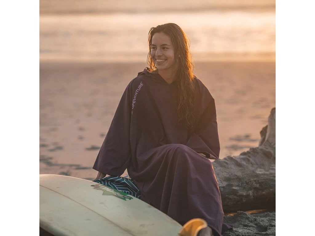 Lifeventure Changing Robes Compact je prezliekací župan s kapucňou, ktorý ti po kúpaní alebo športe spraví presne tú službu, ktorú vonku potrebuješ. Diskrétne sa prezlečieš z mokrých plaviek, zahreješ sa proti vetru a zároveň máš okolo seba pohodlný priestor, v ktorom sa môžeš normálne hýbať. Ideálny na pláž, k jazeru, k moru, na paddleboard, otužovanie, kempovanie aj ako prezliekacie pončo na cestovanie, keď chceš komfort a súkromie bez zbytočných kompromisov.