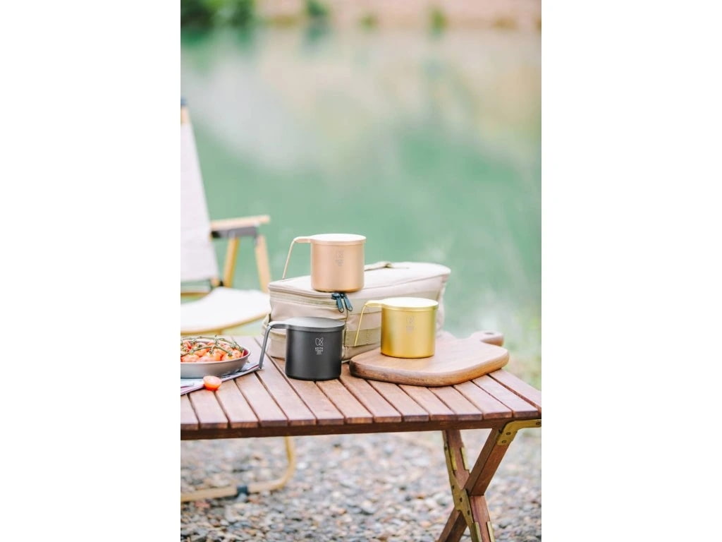 Hrnček je vyrobený z čistého titánu, ktorý vyniká nízkou hmotnosťou, pevnosťou a odolnosťou proti korózii. Titán navyše nereaguje s nápojmi, takže zachováva ich prirodzenú chuť bez kovového nádychu. Matne čierna povrchová úprava dodáva hrnčeku moderný a nadčasový vzhľad, ktorý pôsobí elegantne v každom prostredí. Praktické hermetické viečko pomáha udržať nápoj dlhšie horúci alebo studený a zároveň obmedzuje riziko rozliatia, zatiaľ čo ergonomické ucho zvyšuje pohodlie pri používaní.