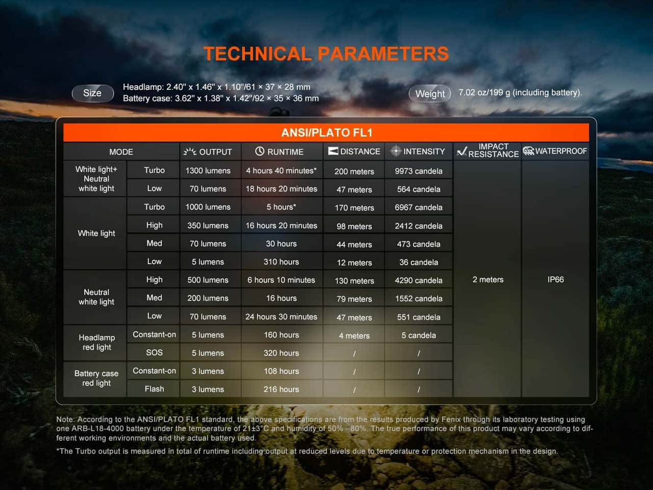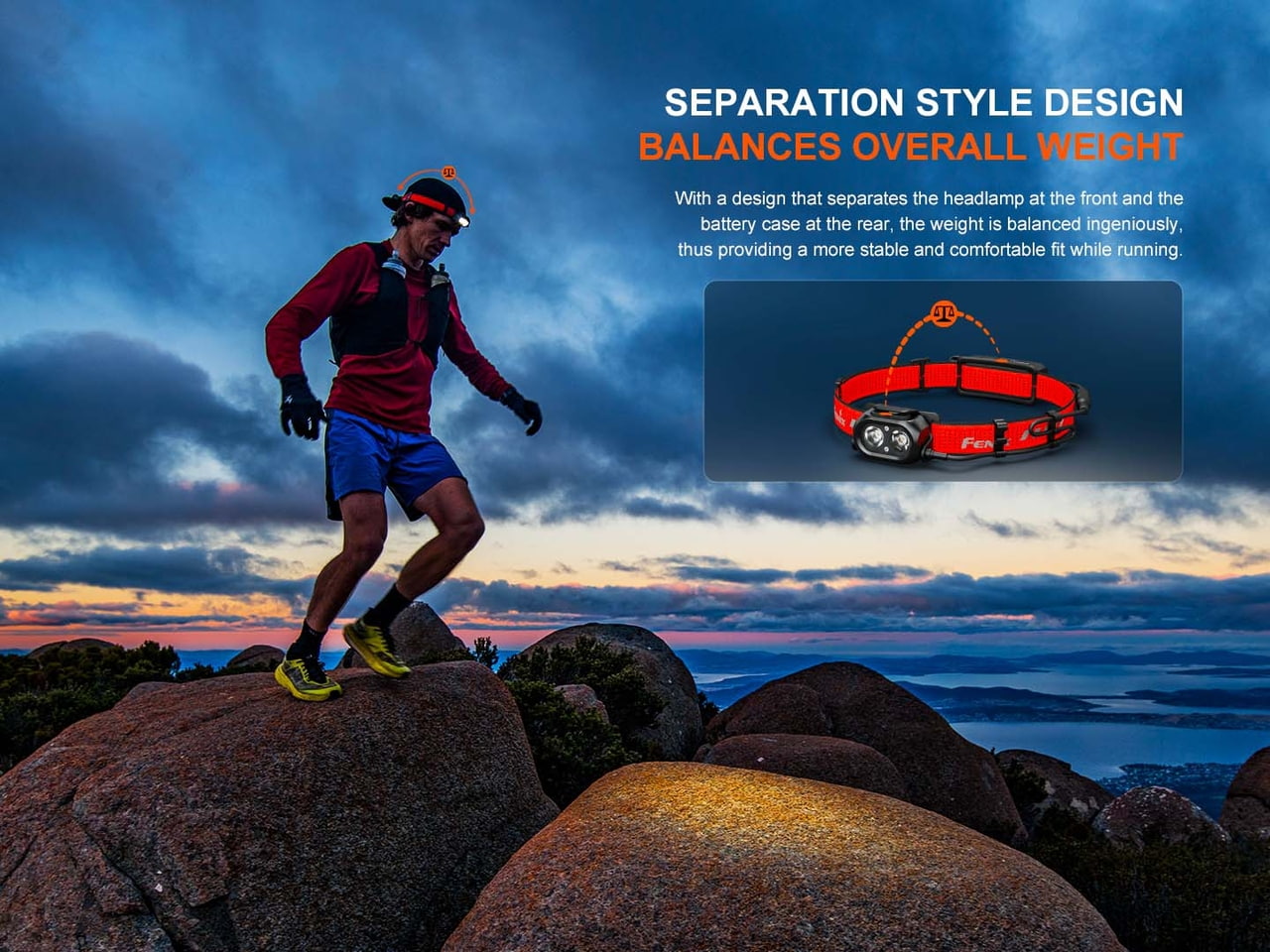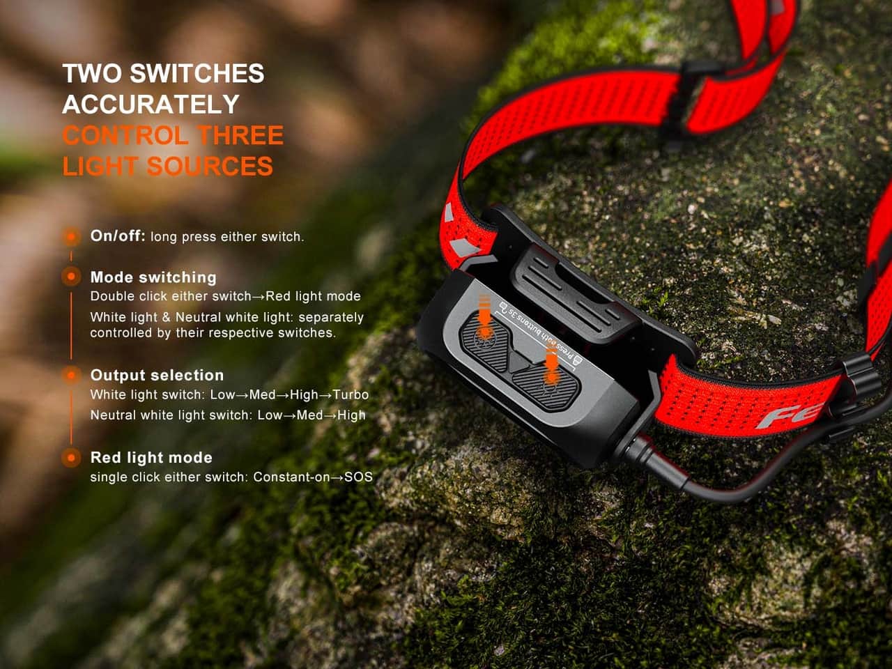 Čelovka Fenix HP12R-T je vysoko výkonná čelovka s praktickou konštrukciou, ktorá má oddelené zadné puzdro na batériu. Vďaka dvoma reflektorom poskytuje svetelný tok až 1300 lúmenov (ANSI) a dosvit až 200 metrov. Reflexné vytvára dobre zaostrené svetelné lúče, ktoré svietia do dálky i na blízko zároveň. Hlavný reflektor svítí chladným bielym svetlom (cca 6500 K), ktorý je ideálny pre obyčajnú dobrú viditelnost. Sekundární reflektor má neutrální biely odstín (cca 4500 K), ktorý lepšie proniká mlhou, deštem i snežením, a je tak skvelý do zlého počasia. Hlavný reflektor ponúka štyri režimy svietenia (až 1300 lm) a druhý reflektor tri režimy (až 500 lm). Pre maximálny výkon možno v turbo režime (1300 lm) alebo v nízkom režime (70 lm) spustiť oba reflektory naraz. Pre bezpečnosť a špeciálnu situáciu je čelovka vybavená tiež predným červeným svetlom, červeným SOS blikaním a červeným svetlom i blikačkou na zadním baterovom pouzdre. Napájanie zabezpečuje vymeniteľný Li-ion akumulátor s kapacitou 4000 mAh, ktorý sa pohodlne nabije cez moderný USB-C konektor priamo v tele čelovky. Perforovaný popruh s reflexnými prvkami je pohodlný, pohodlný a zvyšuje vašu pasívnu bezpečnosť. Vďaka vyváženej konštrukcii je čelovka ideálnou voľbou pre trailový beh, cyklistiku a lyžovanie. Skvele vám poslouží ale aj pri turistike, lezení, kempovaní, rybárčení alebo v industriálnom a profesionálnom prostredí. Je to absolútne spoľahlivý partner do každej situácie!