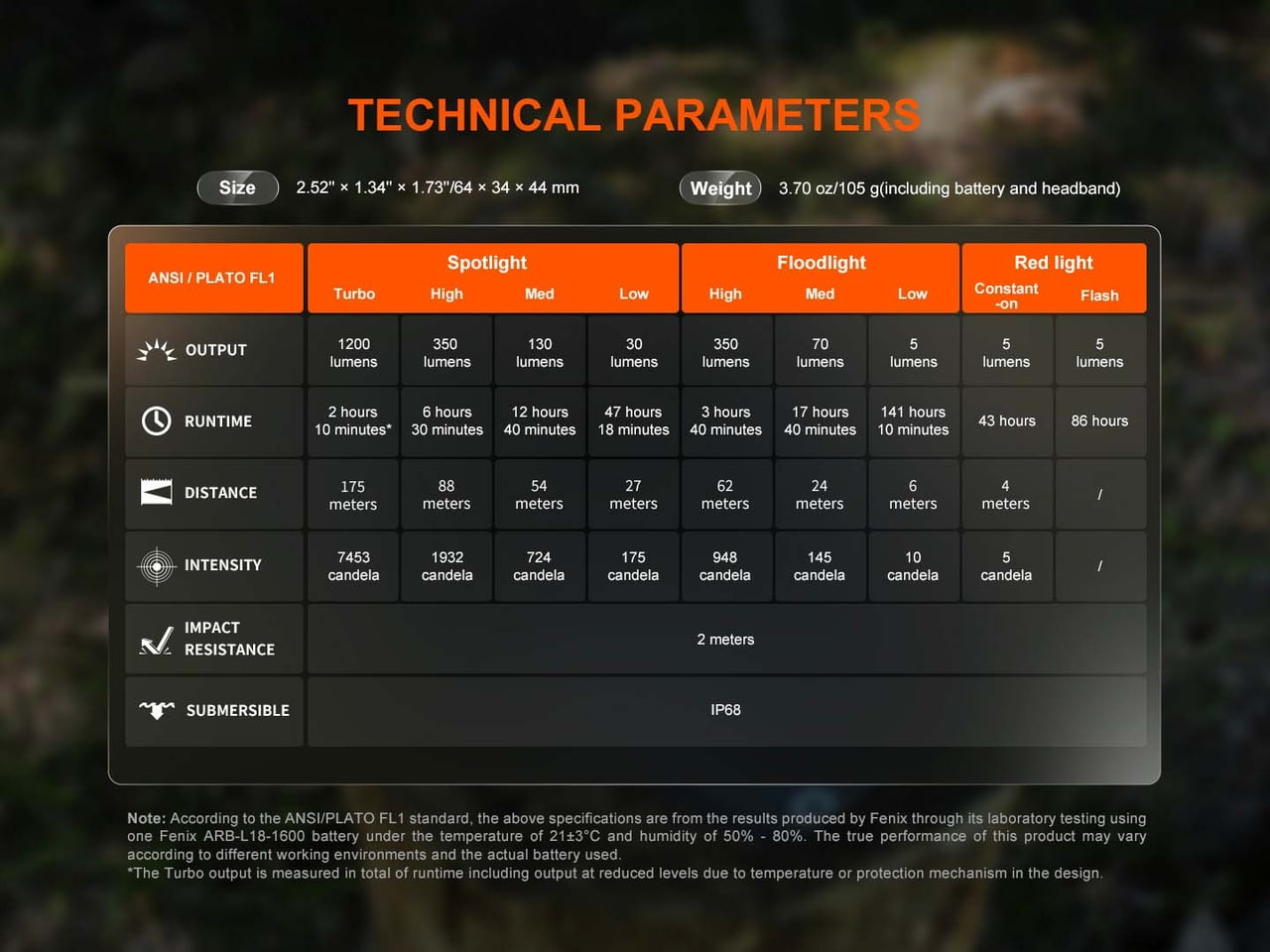 Ľahká, výkonná a nekompromisne všestranná. To je nabíjacia čelovka Fenix HM55R, navrhnutá pre každú situáciu. Vďaka kompaktnému Li-ion akumulátoru typu 18350 váži iba 105 gramov, ale jej maximálny výkon 1200 lúmenov s dosvitom až 175 metrov vás ohromí. Ponúka tri typy svietenia – diaľkové, široké a červené – takže máte vždy po ruke to správne svetlo, či už skúmate terén, pracujete v dielni, alebo si len chcete čítať v stane. Diaľkový reflektor vytvára dobre zaostrený svetelný lúč s ďalekým dosvitom a druhý reflektor má svetelnú stopu veľmi širokú a plynulú. Svetelný tok diaľkového reflektora je až 1200 lúmenov, reflektor so širokým kužeľom ponúka maximálny výkon 350 lúmenov a neutrálny odtieň svetla s vysokým indexom kvality podania farieb CRI >90 (Color Rendering Index). K dispozícii je aj červené svetlo a blikačka o sile 5 lúmenov. Na napájanie používa jeden Li-ion akumulátor typu 18350 s kapacitou 1600 mAh, ktorý je súčasťou balenia a nabíja sa cez moderný USB-C konektor priamo v čelovke. Čelovku je možné v núdzi napájať aj akumulátory RCR123A (16340) aj jednorazovou batériou CR123A. Čelovka je opatrená širokým pohodlným popruhom. Popruh je perforovaný pre rýchly odvod potu a opatrený reflexnými prvkami, ktoré zaisťujú dobrú pasívnu viditeľnosť pri behu po ceste. Konštrukcia HM55R je plne prachuvzdorná a vodotesná do 2 metrovej hĺbky podľa štandardu IP68 a taktiež nárazuvzdorná pádom z výšky 2 metrov. Čelovka je tiež vybavená funkciou predĺženia výdrže. HM55R sa ponúka v 3 štýlových farbách a je vhodná na profesionálne použitie, rôznorodé športové aktivity (turistika, kempovanie, beh, cyklistika, lyžovanie...), do podzemia, pre rybárov a ďalšie použitie. Zaručene vám skvele poslúži v každej situácii!