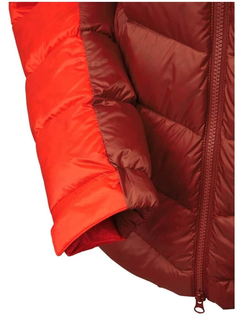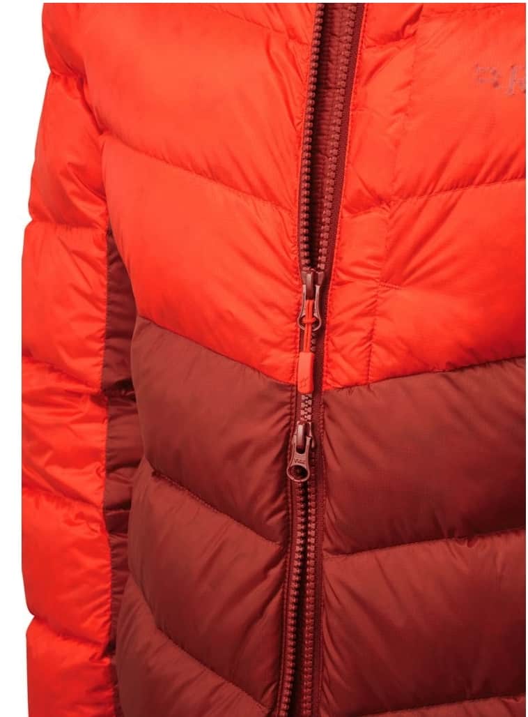Bunda je vyrobená z recyklovaného 20D materiálu Pertex® Quantum Pro s vodoodpudivou úpravou bez fluorokarbónov, ktorá poskytuje vysokú odolnosť voči vetru a vlhkosti. Vo vnútri sa ukrýva 250 gramov recyklovaného prachového peria s plnivosťou 700 FP a hydrofóbnou úpravou Nikwax, takže aj vo vlhkom počasí zostane nadýchaná a hrejivá.