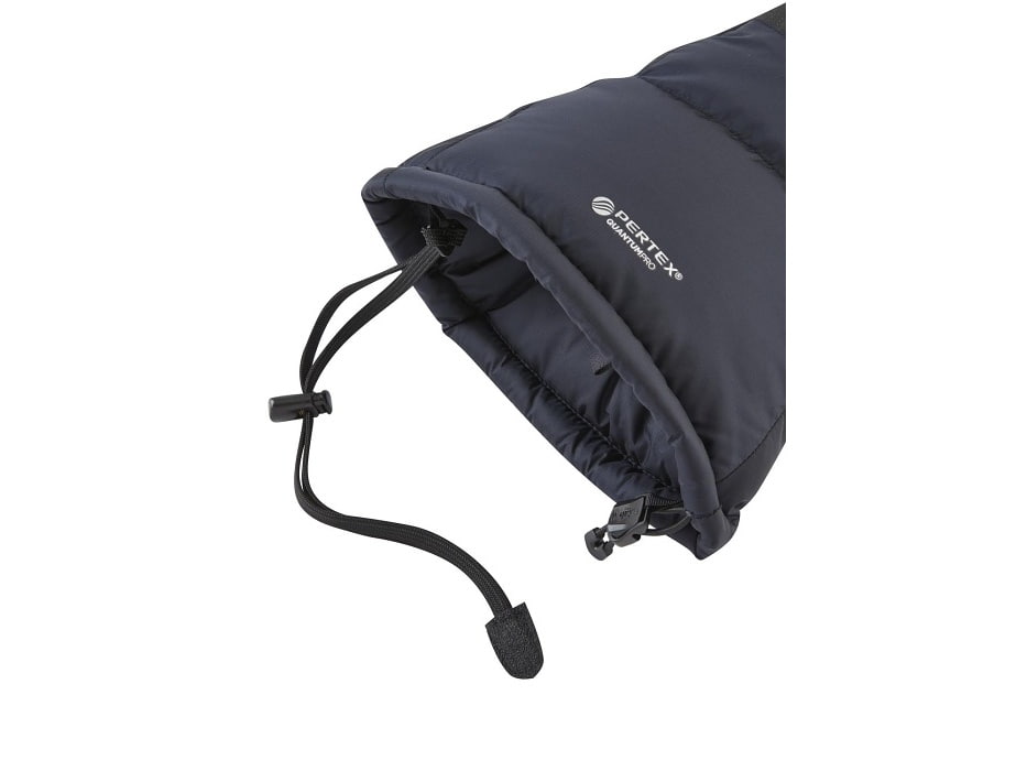 Ľahká konštrukcia s hmotnosťou 252 g obsahuje výplň z európskeho kačacieho páperia 650 FP s vodoodpudivou úpravou Nikwax, ktorá poskytuje vysoký tepelný komfort aj v hlbokých mrazoch. Na bočných paneloch, dlani a vnútri palca sa nachádza syntetická izolácia Stratus, ktorá lepšie odoláva vlhkosti a rýchlo schne. Vrchný materiál Pertex Quantum Pro spoľahlivo chráni pred vetrom, snehom aj slabým dažďom. Spevnené časti na chrbte ruky a prstoch zvyšujú odolnosť, textúrovaná dlaň poskytuje istý úchop pri práci s paličkami alebo čakanom. Širokú manžetu je možné stiahnuť jednou rukou, vnútorná elastická manžeta udržiava teplo a odnímateľné pútka na zápästí zabránia strate palčiakov pri manipulácii s výstrojom.