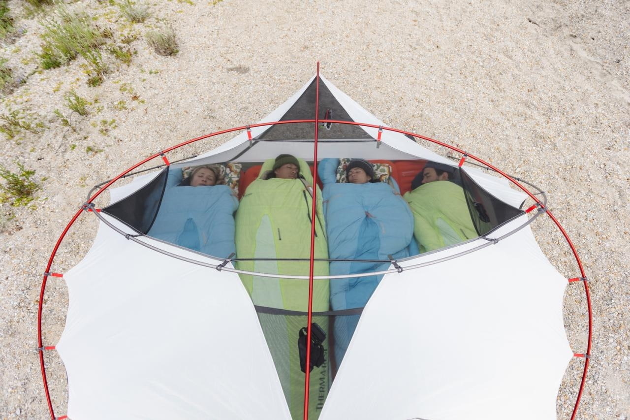 Veľkou prednosťou je skutočne obdĺžnikový pôdorys a unikátna geometria prútov, ktorá vytvára veľmi príjemnú vnútornú výšku a dobre využiteľný obytný priestor. Kombinácia sieťovaných a plných textilných panelov pomáha vyvážiť prúdenie vzduchu, tepelný komfort aj súkromie, takže sa stan dobre prispôsobí rôznemu počasiu. Plnohodnotné tropiko s dvoma vstupmi StayDry, ventilačným otvorom, podlepenými švami a DWR úpravou bez PFAS pomáha udržať vnútorný priestor v suchu aj pri daždi a vlhkosti. Samonosná konštrukcia, farebne značené prúty a popruhy a priložená podlážka navyše uľahčujú rýchlu a intuitívnu stavbu.