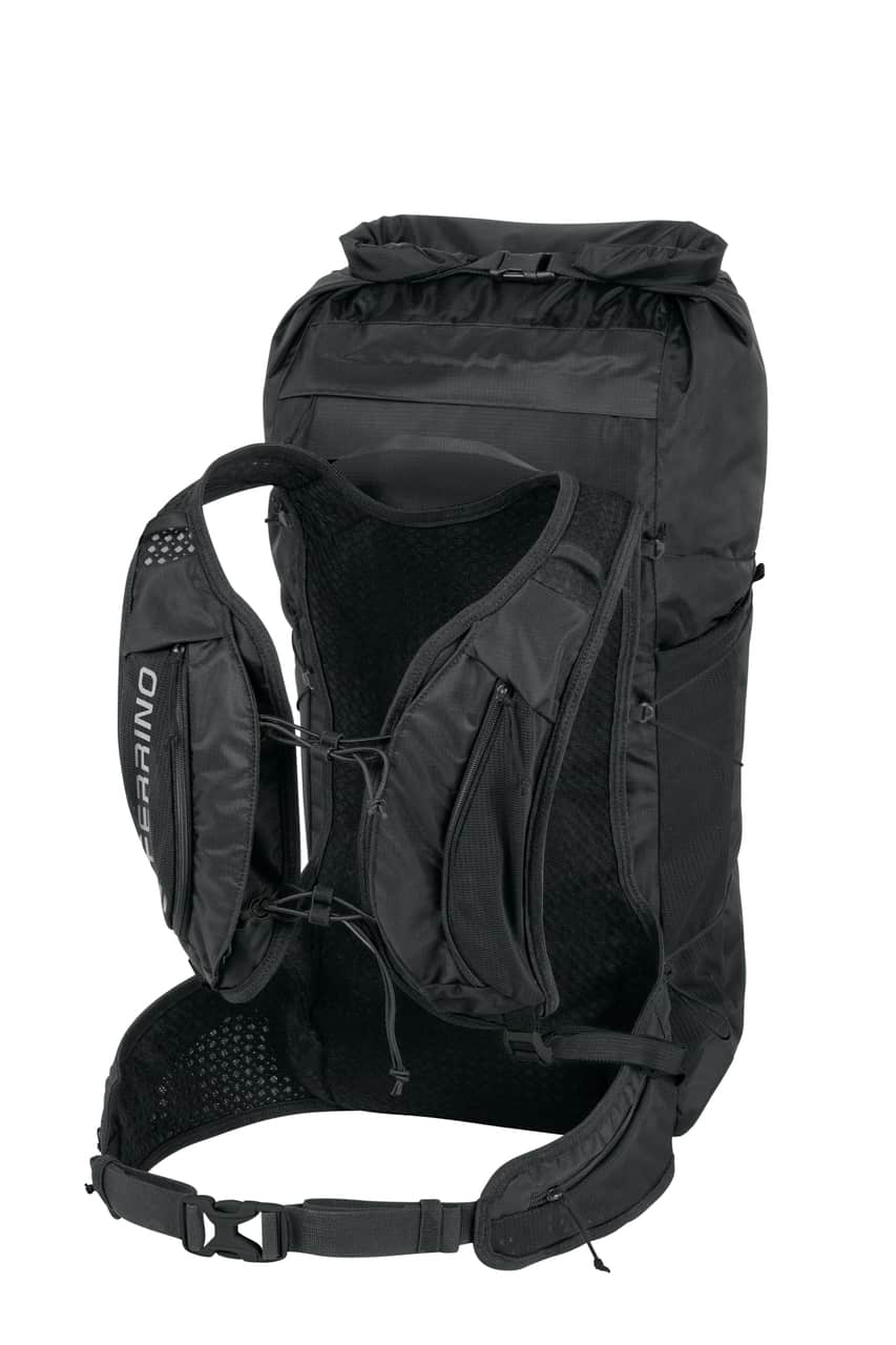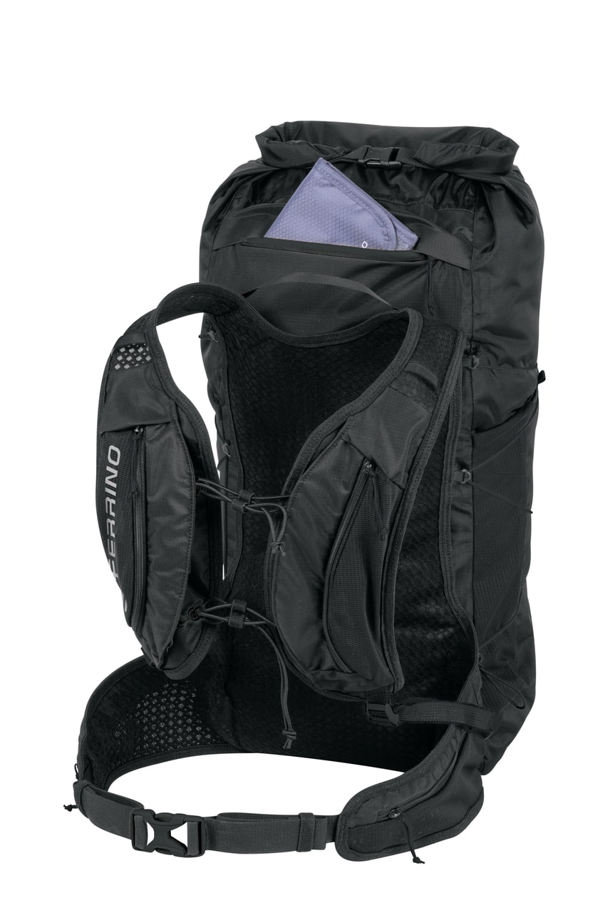 Organizácia je navrhnutá na rýchle použitie v teréne. Nechýbajú bočné vrecká, vrecká na ramenných popruhoch na drobnosti a vrecká na bedrovom páse. Rolovacie uzatváranie pomáha chrániť obsah a pruženky na trekingové palice umožnia prenášanie výbavy vzadu. Bočný kompresný systém sa dá ovládať aj počas chôdze bez zloženia batohu, čo oceníš pri aktivitách, kde sa ráta každá minúta. Samozrejmosťou je píšťalka, háčik na kľúče a kompatibilita s hydratačným systémom.
