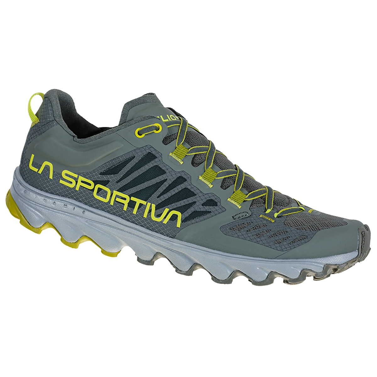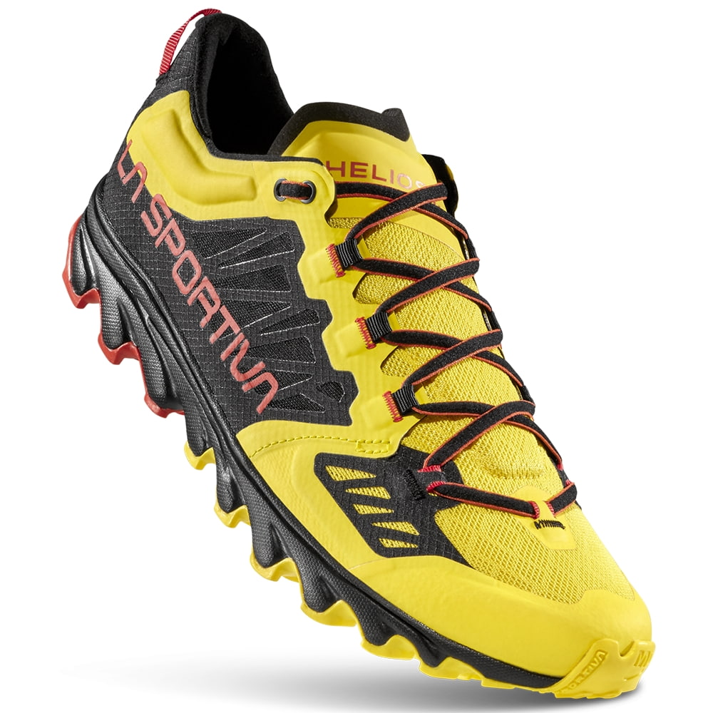 La Sportiva Helios III sú ľahké pánske trailové bežecké topánky na beh z domu rovno na trail a späť, ideálne na tvrdý terén, spevnené cesty, kamenisté chodníky aj suché horské traily. Ak hľadáš pánsku bežeckú obuv, ktorá je extrémne priedušná, pohodlne sedí na nohe a pritom zvládne tvrdý podklad bez zbytočného spomaľovania, Helios III stavia na nízku hmotnosť, rýchly krok a maximálne tlmenie typické pre túto sériu.