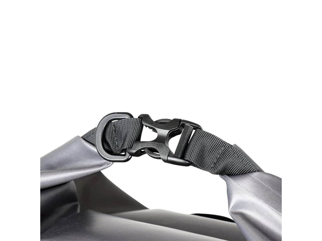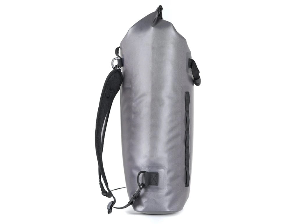Batoh je vyrobený z pevného zváraného materiálu 420D TPU, ktorý zaisťuje vysokú odolnosť a spoľahlivú ochranu obsahu. Rolovací uzáver pomáha bezpečne utesniť hlavný priestor a chrániť vybavenie pred vodou pri pohybe v náročných podmienkach. Komfort pri prenášaní zvyšuje polstrované držadlo a nastaviteľné odnímateľné ramenné popruhy, vďaka ktorým si môžeš batoh prispôsobiť podľa aktuálnej potreby. Praktickým detailom sú aj predné materiálové očká na uchytenie drobností a vnútorné vodeodolné vrecko na zips, ktoré sa hodí na bezpečné uloženie cenností.