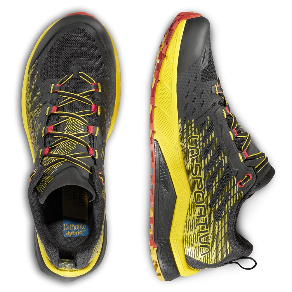 Podrážka z dvojitej zmesi FriXion Red s bočnými výstupkami Impact Brake System pridáva istotu pri výbehoch aj pri zbehoch a vzor 3.5 mm je univerzálna voľba do rôznych typov terénu. Jackal II je presne tá trailová topánka La Sportiva, ktorá ťa bude baviť na dlhých trasách, na ultra pretekoch aj pri pravidelnom nabiehaní kilometrov, pretože spája odpruženie, odolnosť a komfort do jedného vyváženého celku.