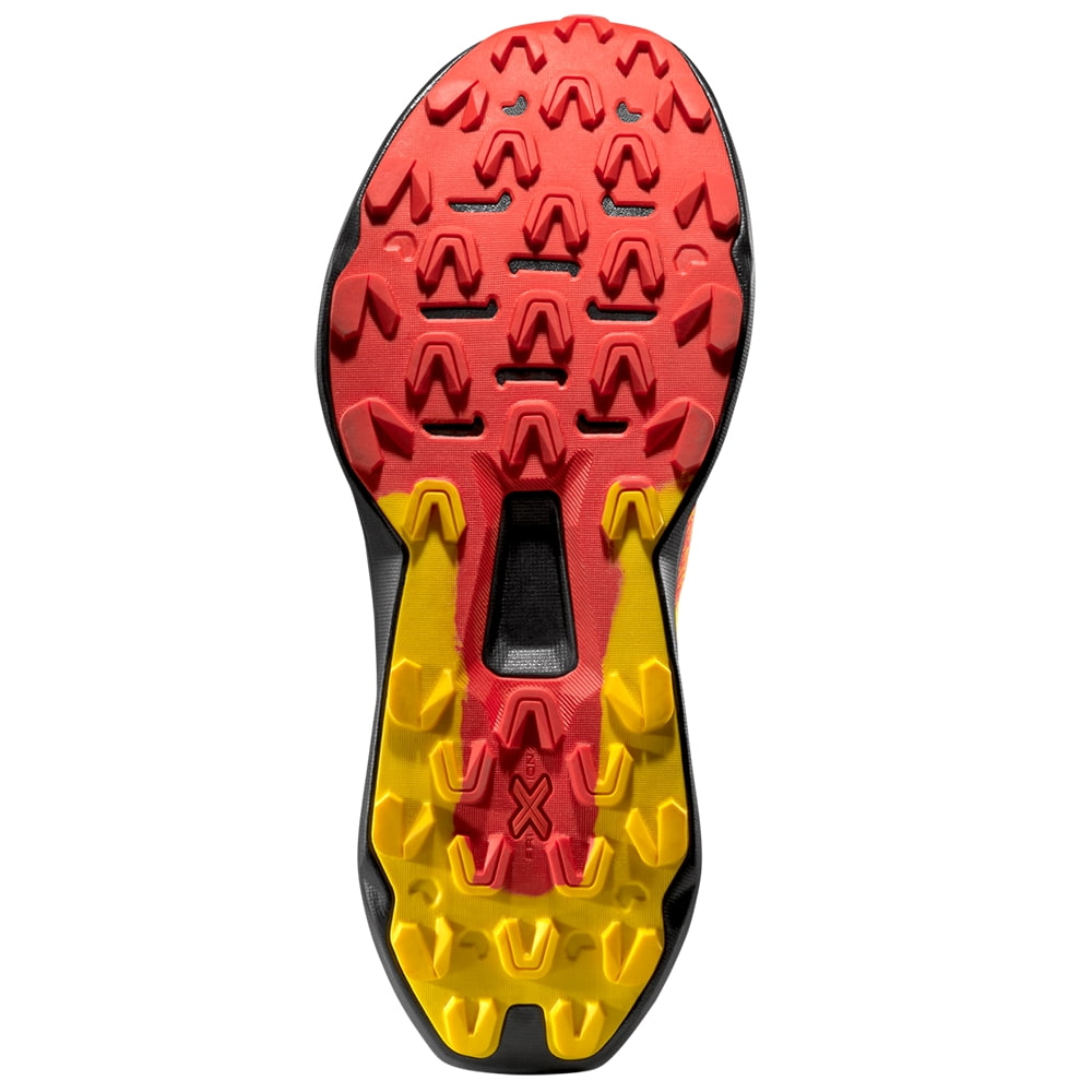 Podrážka z dvojitej hustoty FriXion Red má odolnejšiu zónu v päte pre dlhšiu životnosť a priľnavejšiu časť v strednej a prednej časti pre maximálnu trakciu. Vzor 4 mm je univerzálny do hôr, na lesný trail aj na šotolinu a pomôže ti držať istotu aj na technickom povrchu. La Sportiva Prodigio 2 je stávka na pohodlie, stabilitu a energiu pre dlhé výzvy, bez ohľadu na to, aký trail si práve vyberieš.