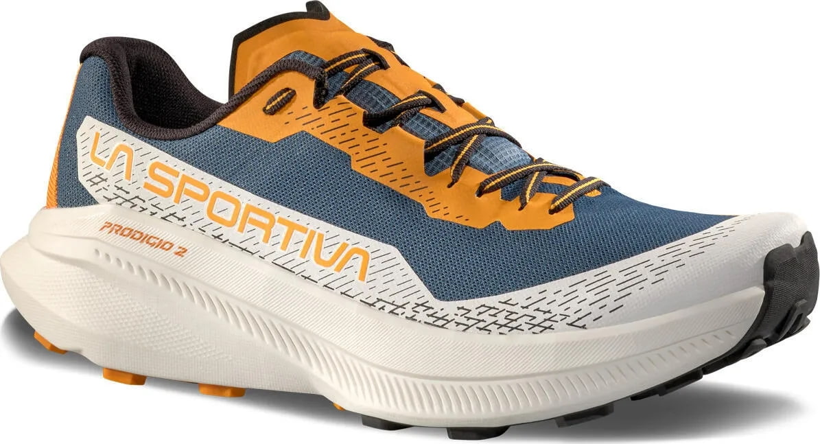 La Sportiva Prodigio 2 sú pánske trailové topánky, ktoré zvládnu všetko od pohodových behov po lesných cestách až po tvrdé vytrvalostné preteky, kde sa hrá o stabilitu, tlmenie a spoľahlivý grip v každom kroku. Sú to univerzálne trailovky pre bežcov, ktorí chcú jednu topánku na rôzne povrchy a rôzne tempo a zároveň požadujú pohodlie a energiu aj na dlhých tratiach. Prodigio 2 spája priedušný odolný zvršok, výrazné tlmenie z materiálu XFlow a podrážku FriXion Red s istým záberom v technických pasážach.