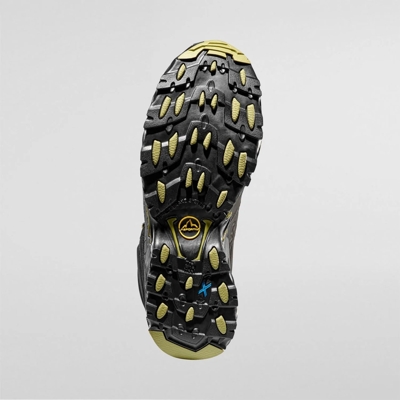 Tlmenie zabezpečuje medzipodrážka MEMlex EVA so vstrekovaným tlmením, ktorá pomáha znižovať únavu pri dlhých trasách. Stielka La Sportiva Mountain Hiking 5 mm pridáva komfort pod chodidlom. Podrážka z odolnej zmesi FriXion Blue je pripravená na dlhú životnosť a spoľahlivý pomer priľnavosti a odolnosti. Impact Brake System zlepšuje trakciu a kontrolu pri zostupoch a Trail Bite Heel pomáha s brzdením na strmších svahoch. Nechýba ani integrovaná gumová ochrana špičky proti nárazom a okopaniu. Ultra Raptor II Mid Leather Wide GTX sú skvelá voľba, keď chceš ľahšiu alternatívu k ťažkým pohorkám, ale s nepremokavou ochranou, koženou odolnosťou, oporou členka a väčším priestorom pre širšie chodidlá.
