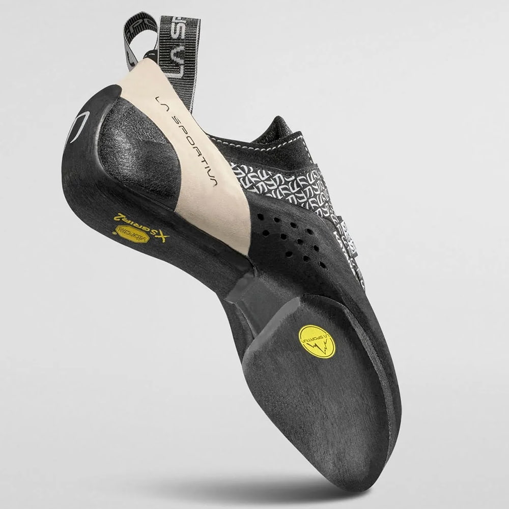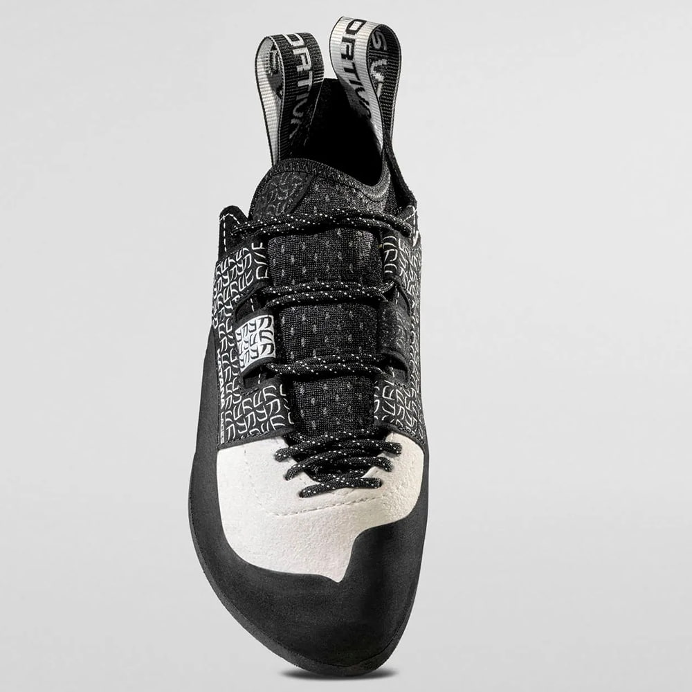 Tradičné šnurovanie umožňuje precízne dotiahnutie po celej dĺžke chodidla a jazyk z priedušnej tkaniny pridáva komfort aj pri dlhšom lezení. Šnurovací systém je vyrobený zo 100 % recyklovaných materiálov, takže okrem výkonu rieši aj nižší dopad. Podrážka Vibram XS Edge 4 mm je navrhnutá pre vysokú odolnosť a stabilitu na malých stupoch. Vďaka tvrdšej charakteristike sa lepšie rozkladá tlak a lezečka drží istotu aj tam, kde je stup len malý bod a potrebuješ stáť presne a dlho.
