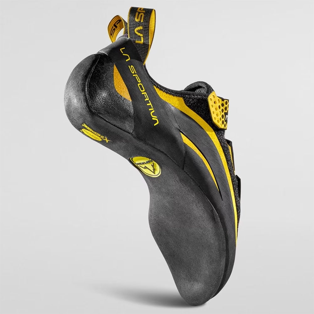 Kľúčom k výkonu je kombinácia P3 System a medzipodrážky LaSpoFlex 1.1 mm iba v špičke. Táto konštrukcia podporuje presný nášľap na malý stupeň, drží stabilitu v odraze a zároveň pomáha zachovať pôvodný tvar a elasticitu lezečky, aby nestrácala svoj charakter ani po mnohých tréningoch. Podrážka Vibram XS Edge 4 mm je odolná, presná a výborná na mikrostupy, kde potrebuješ rozložiť váhu a stáť dlho bez premačkávania. Päta má novú konštrukciu pre lepšiu presnosť pri heel hooku, čo oceníš v previslých pasážach a technických krokoch, kde sa pätovanie rieši na milimetre.